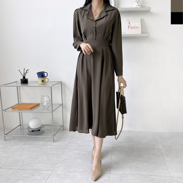브이넥 로맨틱 핀턱롱원피스 > DRESS