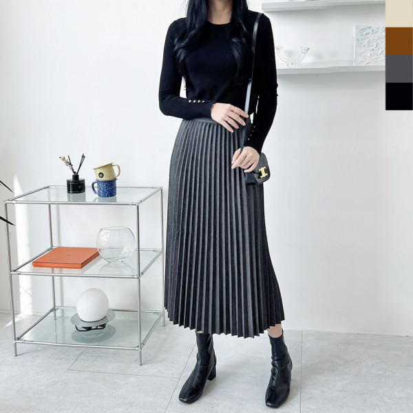 맥시 플리츠 주름 롱스커트