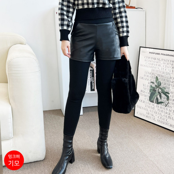 4부 가죽반바지에 밍크퍼안감기모로 부드러운 감촉이 기분 좋은 밍크퍼 레깅스입니다.